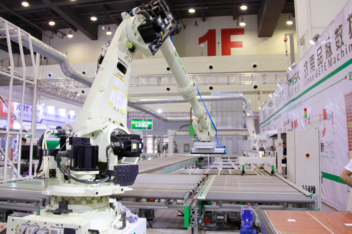 品脈數(shù)控定制家具工業(yè)4.0主要是以無人化工廠為主,打造工業(yè)4.0的生產(chǎn)線,把開料、封邊、鉆孔、分揀、包裝等流程一體化,從而實(shí)現(xiàn)無人式的工廠生產(chǎn)模式。整套定制家具工業(yè)4.0硬件部分涵蓋開料設(shè)備、多軸搬運(yùn)機(jī)器人、封邊回轉(zhuǎn)線系統(tǒng)、動(dòng)力傳輸線、龍門抓料機(jī)、