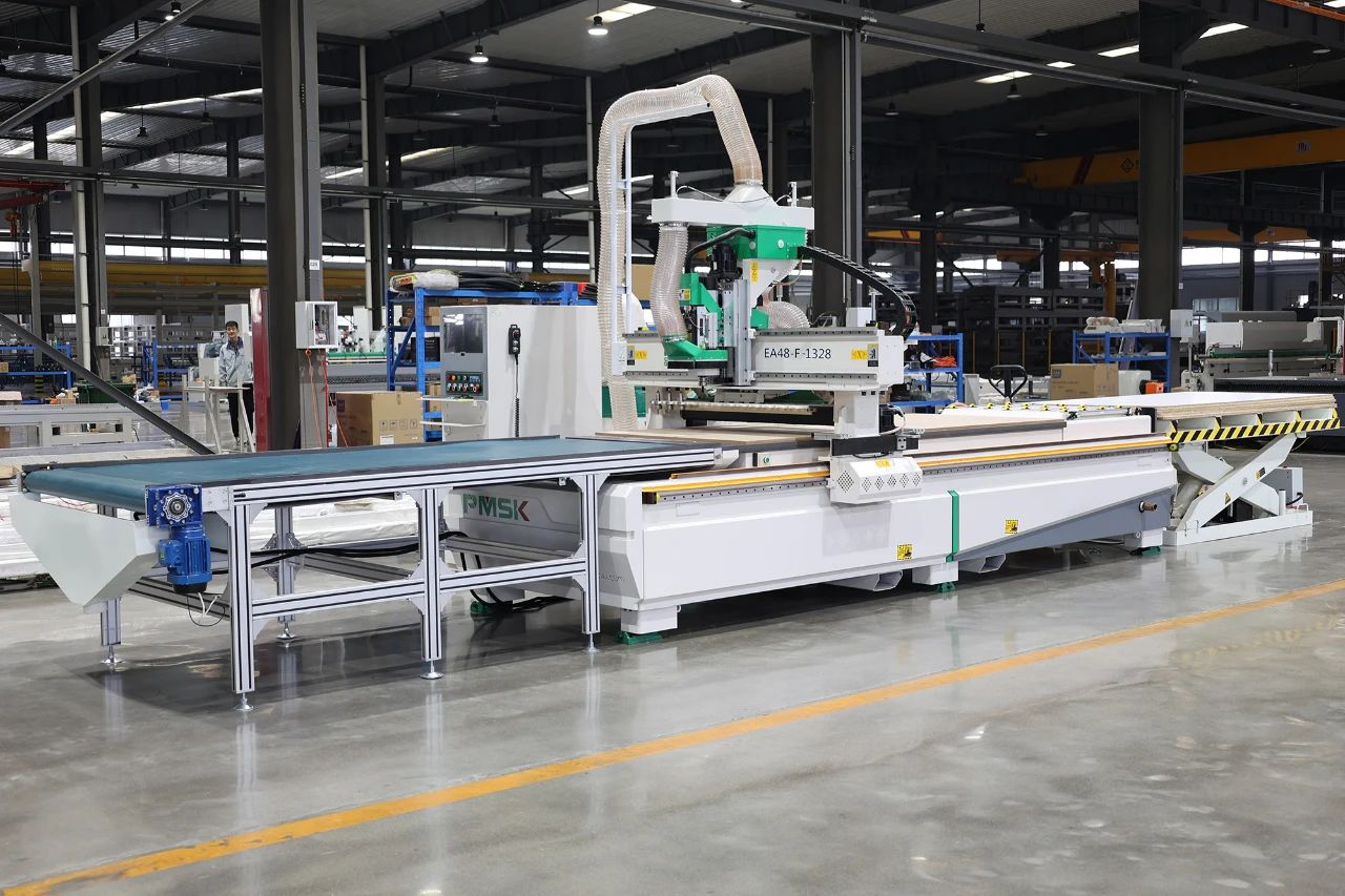 直排加工中心主要用于板式家具柜體以及門板的加工生產(chǎn);可快速鉆孔、開槽與切割下料加工,可加工常見的板式家具二合一、三合一連接件安裝孔位,具備加工部分種類隱形連接件的功能;本機(jī)配備大功率換刀主軸及直排式刀庫,適合多元化復(fù)雜性產(chǎn)品加工或多樣加工,用途廣泛:可一次性下料、鉆孔、切割、倒邊、雕刻等;操作簡單,特別適合定制化需求生產(chǎn)加工。