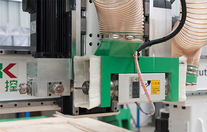 2、側(cè)面鎖孔采用銑刀擺動(dòng)裝置、變頻電機(jī)、真空吸附門板,自動(dòng)銑削成型。