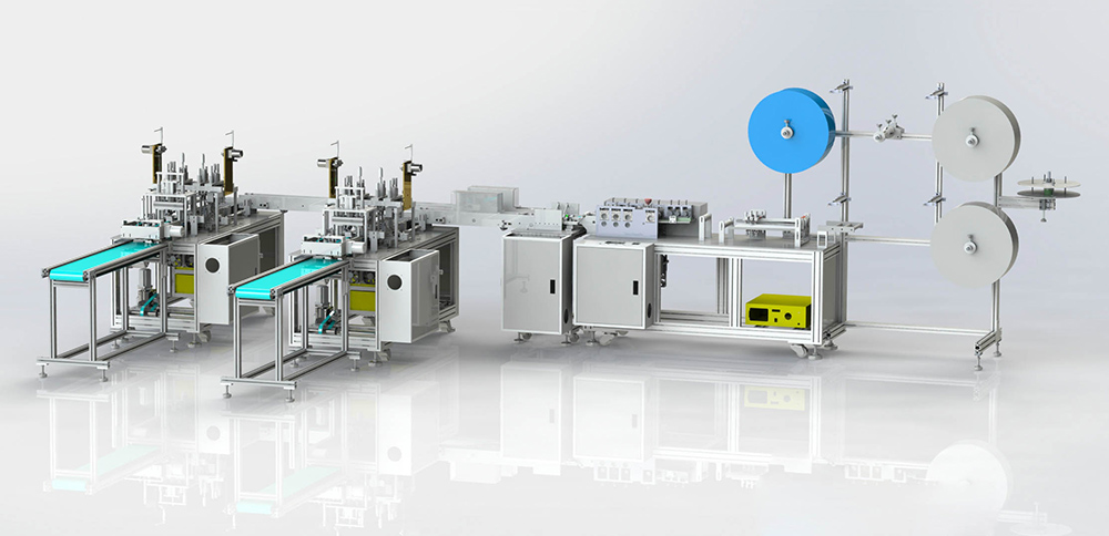 品脈數(shù)控研發(fā)設(shè)計(jì)的全自動(dòng)高效口罩生產(chǎn)線,由原材料自動(dòng)輸送系統(tǒng)、折疊成型系統(tǒng)、耳帶熔焊系統(tǒng)、下料系統(tǒng)組成;適用于多層PP無(wú)紡布、活性炭以及過(guò)濾材料,通過(guò)超聲波熔接和自動(dòng)封邊,完成平面口罩從原材料卷料到口罩成型的整個(gè)生產(chǎn)過(guò)程,實(shí)現(xiàn)口罩生產(chǎn)從材料到成品的全自動(dòng)化,每小時(shí)可產(chǎn)口罩達(dá)6000~8000只。