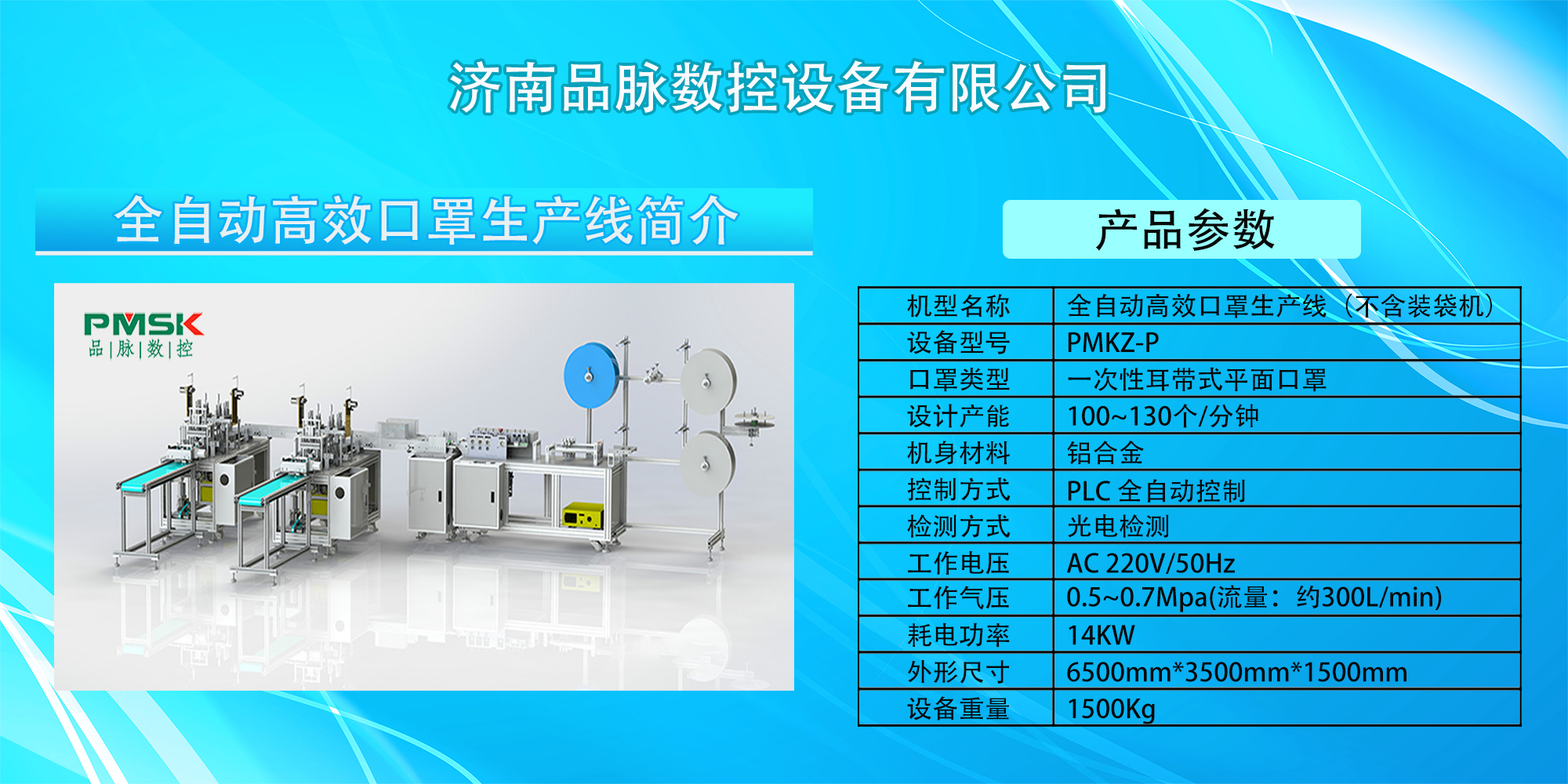 自新冠疫情發(fā)生以來(lái),口罩成為國(guó)內(nèi)外疫情防控的緊缺物資??谡植粌H是疫情防控的有力保障,也是各行各業(yè)有序復(fù)工復(fù)產(chǎn)的基本條件。針對(duì)于國(guó)家口罩生產(chǎn)設(shè)備緊缺的緊張形勢(shì),濟(jì)南品脈數(shù)控設(shè)備有限公司充分發(fā)揮自身智能裝備制造優(yōu)勢(shì),集合全公司的研發(fā)力量,推出了全自動(dòng)的口罩生產(chǎn)線,為抗疫物資生產(chǎn)提供高效的自動(dòng)化解決方案,為抗擊疫情貢獻(xiàn)自身企業(yè)的力量!