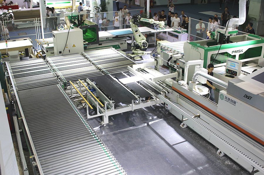 參展機型:自動貼標開料中心,四工序開料機,直排換刀加工中心,拉米諾排鉆開料加工中心,數控六面鉆,數控側孔機,木門綜合加工中心。