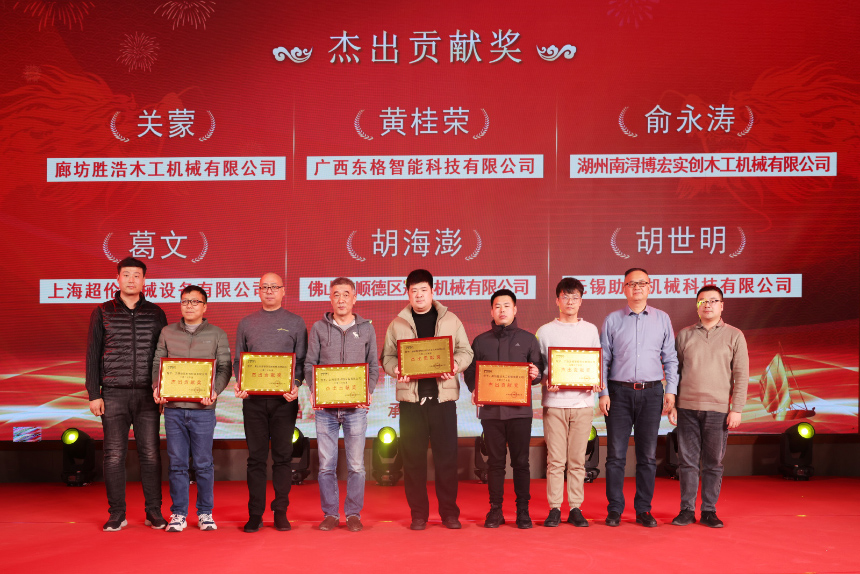 中國(guó)木材與木制品流通協(xié)會(huì)全屋定制分會(huì)執(zhí)行秘書長(zhǎng)、山東省家具協(xié)會(huì)定制家居專委會(huì)秘書長(zhǎng)徐寶傳,山東省家具協(xié)會(huì)副秘書長(zhǎng)王騰,會(huì)員部副主任呂磊頒獎(jiǎng)