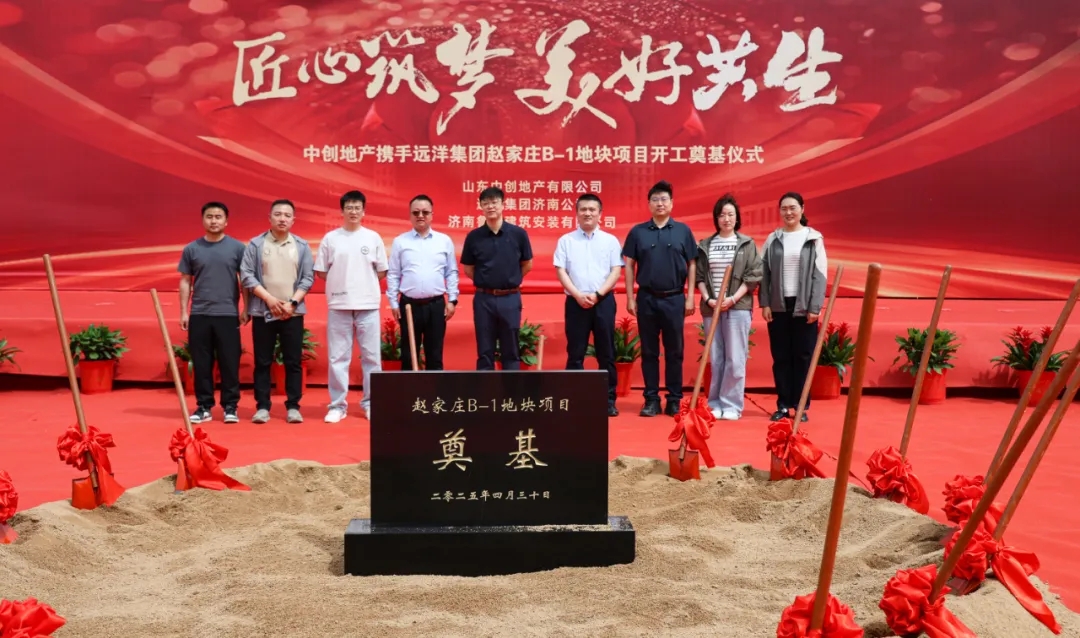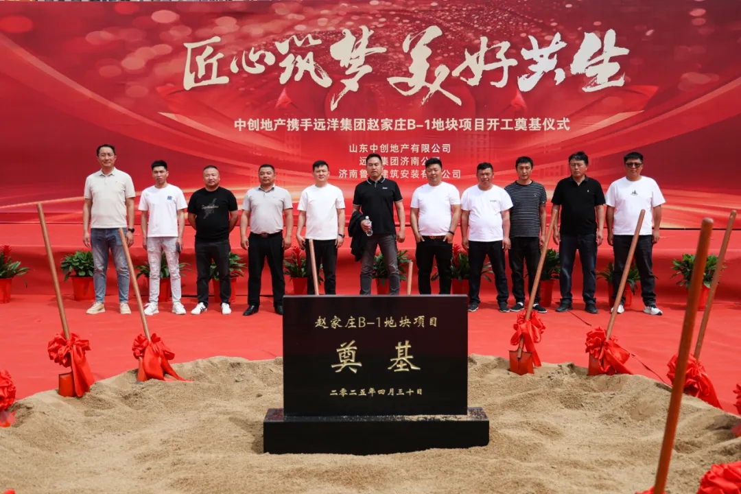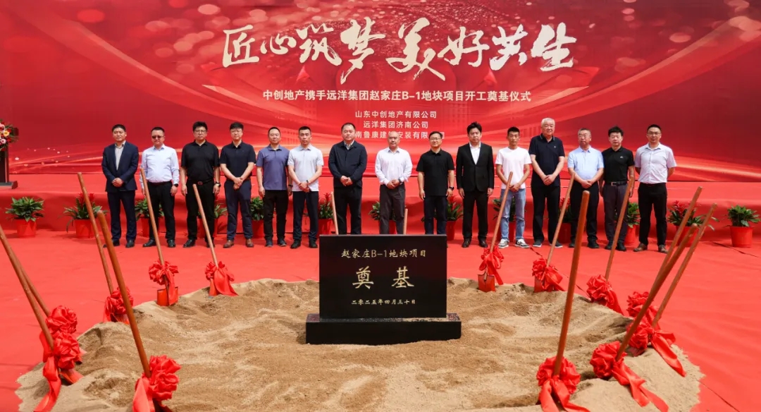 2025年4月30日,由山東中創(chuàng)地產(chǎn)與遠(yuǎn)洋集團(tuán)聯(lián)合開(kāi)發(fā)的趙家莊B-1地塊項(xiàng)目開(kāi)工奠基儀式在濟(jì)南歷城區(qū)隆重舉行。濟(jì)南臨港經(jīng)濟(jì)開(kāi)發(fā)區(qū)管委會(huì)副主任劉存新、歷城區(qū)鮑山街道辦事處黨工委書記付常勇、歷城區(qū)鮑山街道辦事處黨工委副書記,辦事處主任江巖等政府領(lǐng)導(dǎo),中品集團(tuán)董事長(zhǎng)、山東中創(chuàng)地產(chǎn)有限公司董事長(zhǎng)傅濤、山東中創(chuàng)地產(chǎn)有限公司總經(jīng)理潘德亮、遠(yuǎn)洋集團(tuán)環(huán)渤海公司副總經(jīng)理、濟(jì)南公司總經(jīng)理劉曉、遠(yuǎn)洋集團(tuán)濟(jì)南公司副總經(jīng)理吳春雷、濟(jì)南魯康建筑安裝有限公司董事長(zhǎng)王文付、山東建大和盛建設(shè)項(xiàng)目管理有限公司總經(jīng)理劉興全、致谷建筑設(shè)計(jì)(山東)有限公司董事長(zhǎng)丁欣、龍達(dá)恒信工程咨詢有限公司副總經(jīng)理付劍等企業(yè)界代表,以及各界嘉賓代表出席,共同見(jiàn)這一重要?dú)v史時(shí)刻。